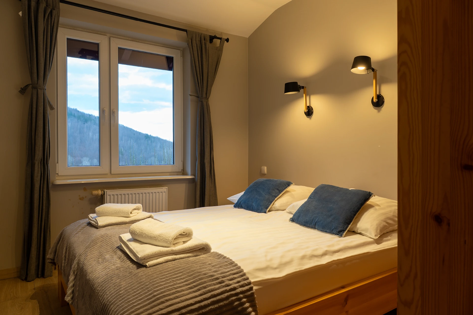Apartament ten oferuje komfortowe miejsca noclegowe dla maksymalnie 6 osób. Na piętrze znajdują się dwie przytulne sypialnie – jedna z wygodnym łóżkiem małżeńskim (160 cm x 200 cm), druga z dwoma pojedynczymi łóżkami (90 cm x 200 cm). Dodatkowo na parterze w salonie mamy rozkładaną sofę, która zapewnia wygodny nocleg dla kolejnych 2 osób. Wszystkie łóżka wyposażone są w wysokiej jakości materace i pościel, gwarantujące doskonały wypoczynek po dniu pełnym górskich atrakcji.