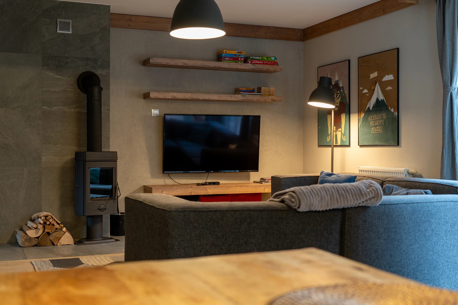 3 poziomowy apartament o pow. 125m² dla maksymalnie 9 osób z prywatną sauną i kominkiem.